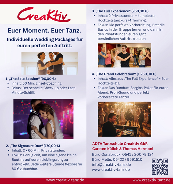Bei Interesse können Sie hier nach Ihrer Kursauswahl gleich das passende Wedding Package dazu buchen:
